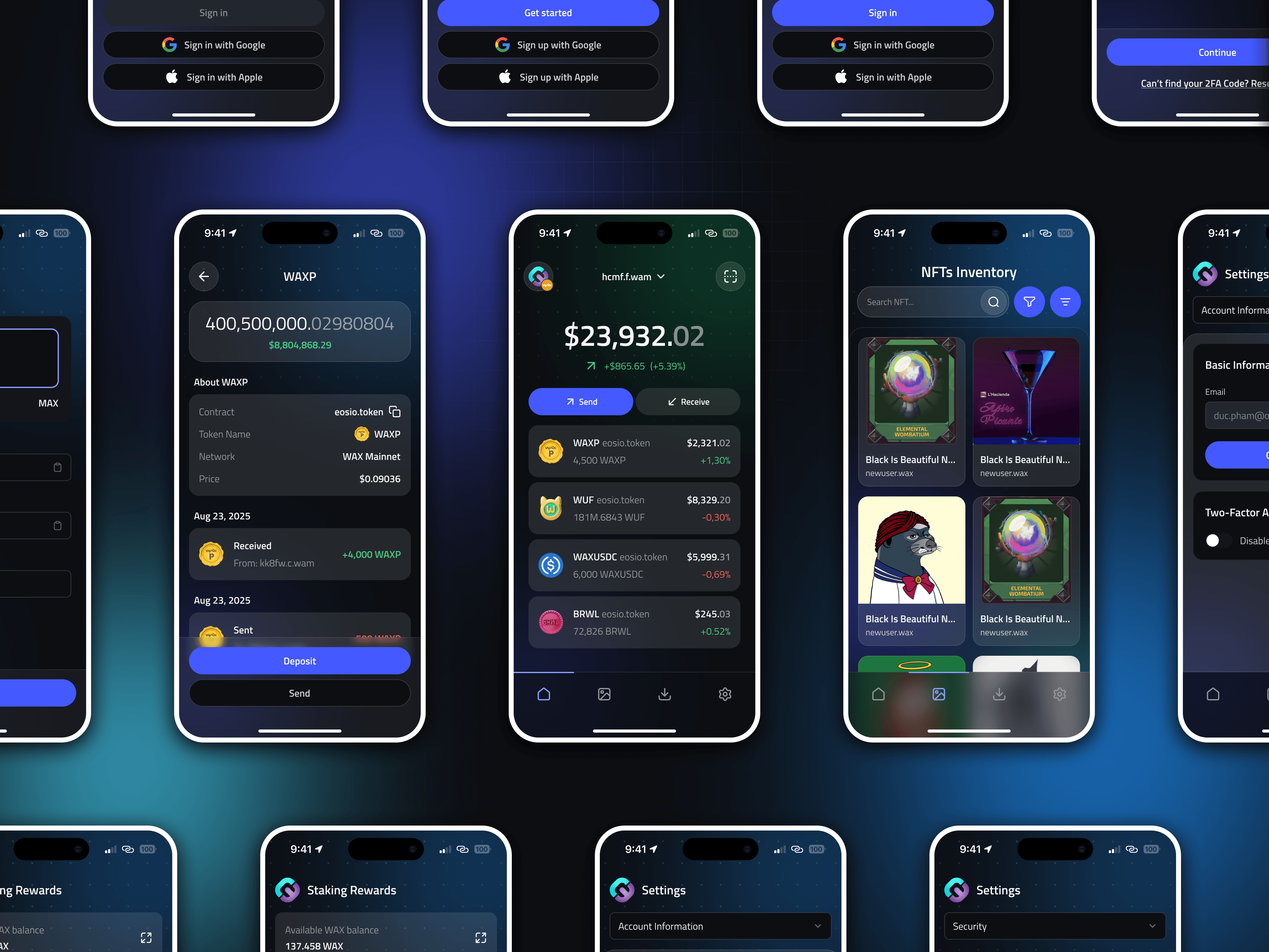 MyCloudWallet is the core entry point into the WAX blockchain ecosystem. I owned the end-to-end design of a cross-platform crypto wallet — from onboarding and authentication to asset management, wallet migration, and on-chain resource control. The challenge: make irreversible blockchain actions feel safe for users who range from crypto-native power users to complete beginners.